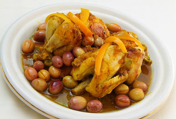 طاجين الدجاج بالليمون المخلل والزعفران اللوزي